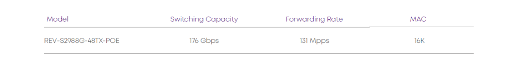 S2988G series switches are built with modern chipsets and have a non-blocking switching matrix that allows all switch ports to operate simultaneously at full speed, guaranteeing high performance and minimal network latency.